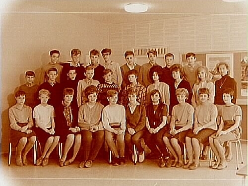 27 skolbarn och lärarinna fru Ingrid Carmelid.