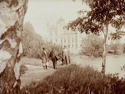 Stora Sundby. Herr och fru Larsson och Jenny i parken