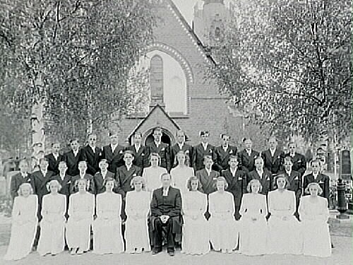 Konfirmander, 12 flickor, 23 pojkar, kyrkoherde Eneström