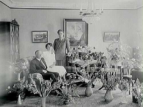 Rumsinteriör, familjegrupp tre personer.