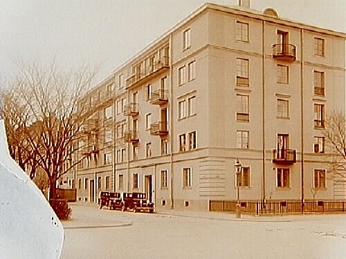 Femvånings hyreshus, hörnfastigheten Mogatan-Oskarsparken.