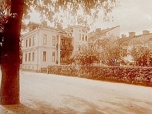Tvåvånings bostadshus med fasad i grå slätputs. Huset har hörnet avfasat mot Olaigatan pilasterinramade sidorialiter. Fasaden har profilerade lister och överstycken över fönstren.