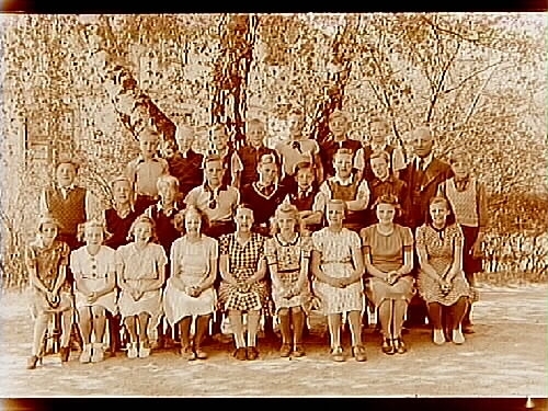 Rynninge skola, 24 skolbarn med lärare Sam. Nystedt.