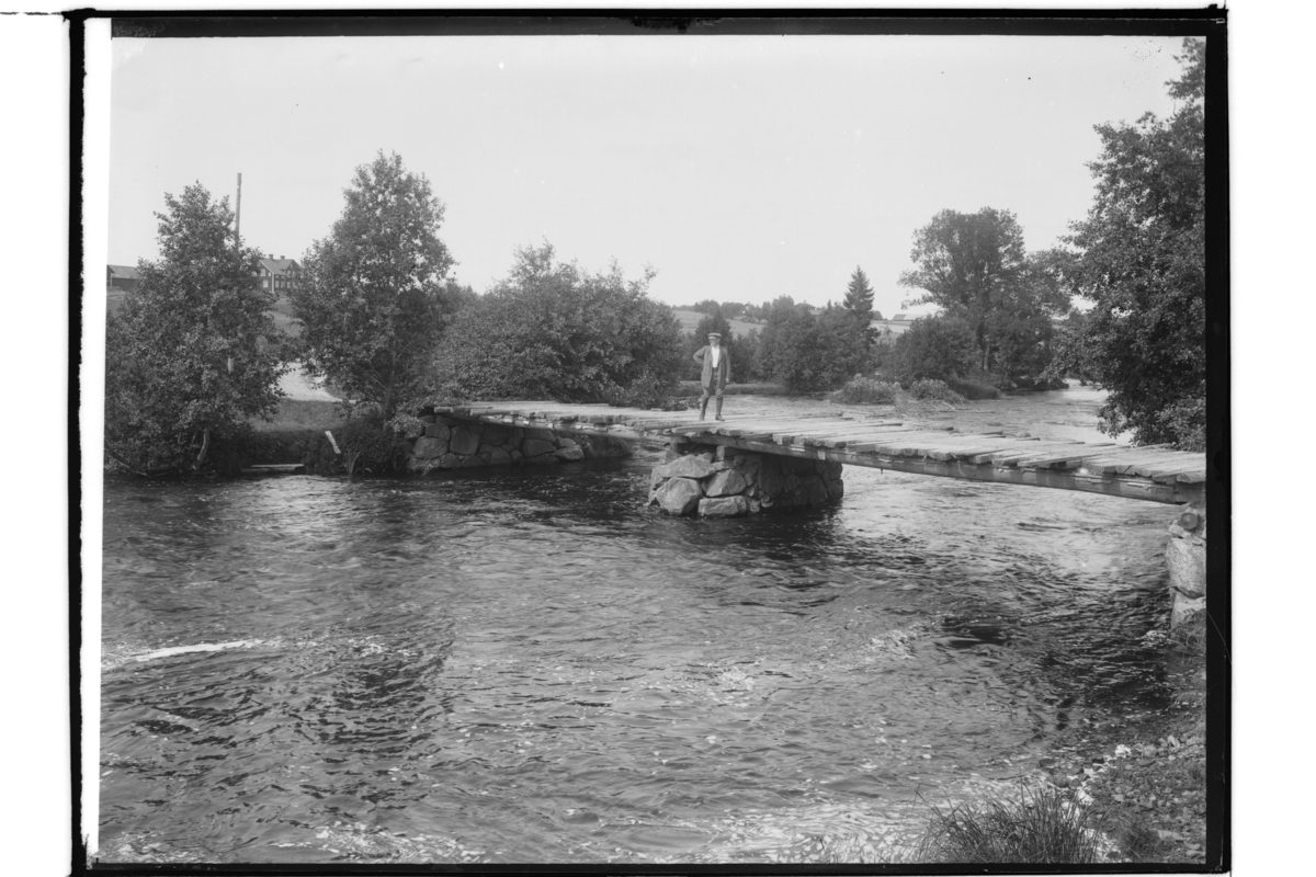 En man på en bro över Svartån.