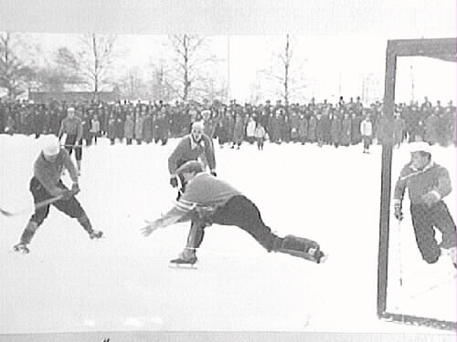 Jojje Gustafsson, ÖSK väl framme. Målvakten är Askersunds Stig Reveny.