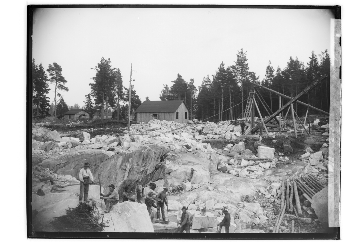 Stenbrottet, 8 arbetare, 3 byggnader.