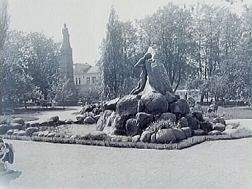 Centralparken, statyn Befriaren och i bakgrunden Karl XIV Johans staty.