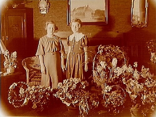 Rumsinteriör, två flickor.