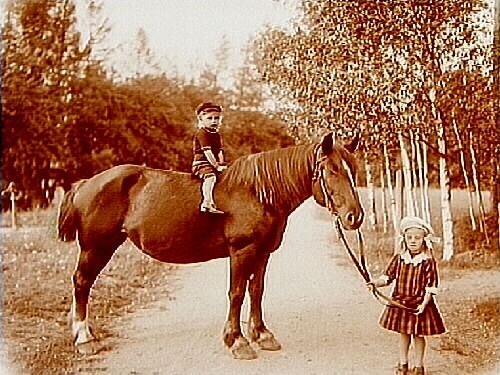 Två barn och en häst.