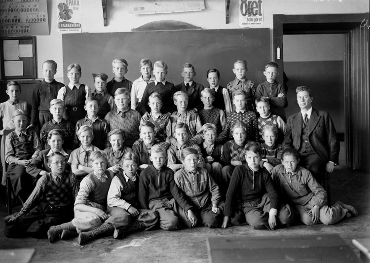 Olaus Petriskolan, klassrumsinteriör, 35 pojkar med lärare C. R. Nilsson.