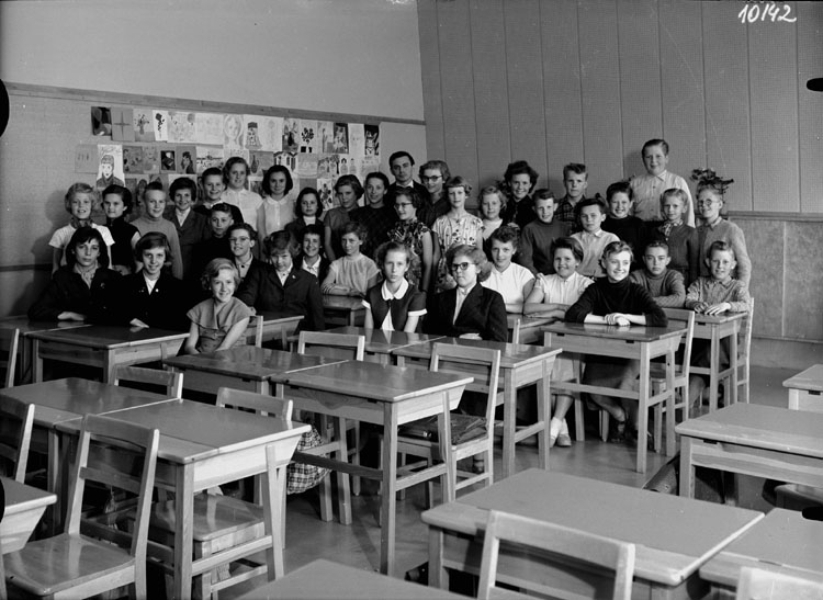 Vasaskolan, klassrumsinteriör, 37 skolbarn med lärare Sven Hallström.