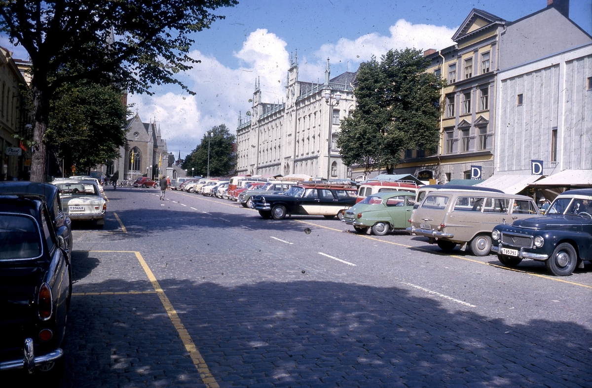 Rakt fram Nikolaikyrkan, till höger Rådhuset och närmast till höger Domus varuhus (ett Konsum varuhus).