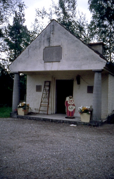 Gällersta. Byggnaden ingår i Forngårdens friluftsmuseum. Det är ett arkiv för gamla papper.