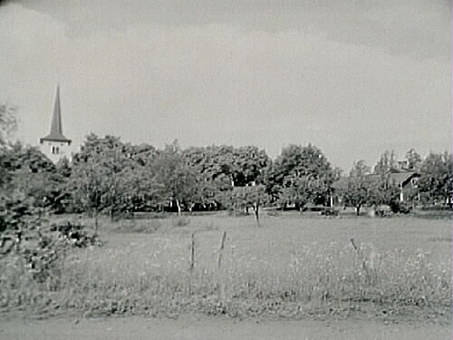Hovsta kyrkan och bostadshus.
