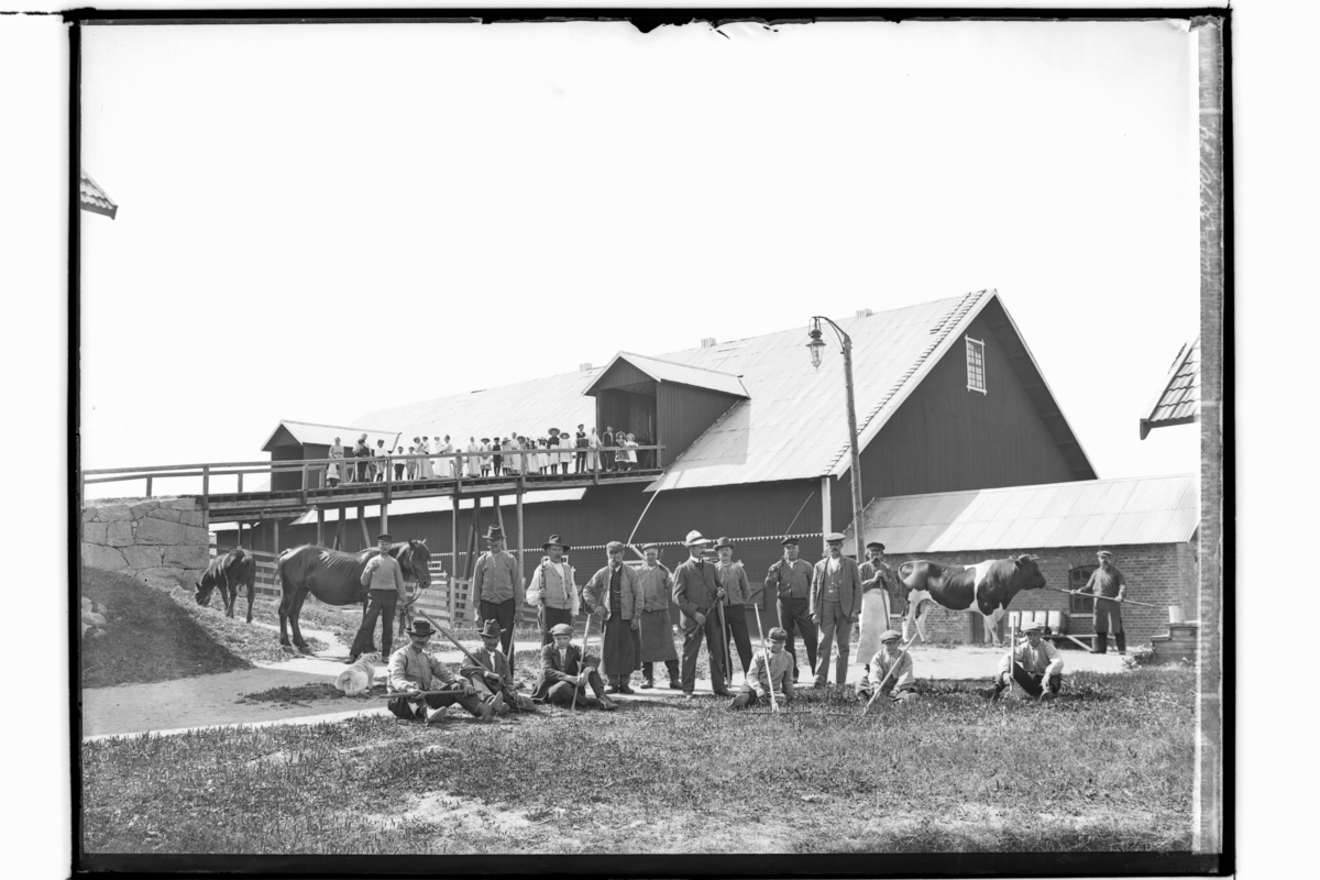 Rättarlaget vid Sundveda. 27 personer på bron upp till ladan.