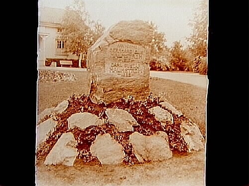 En och en halvvånings bostadshus med förstubro. Minnessten med texten: Här föddes Bernhardt Elis Malmström, 1816. Carl Gustaf Malmström, 1822.