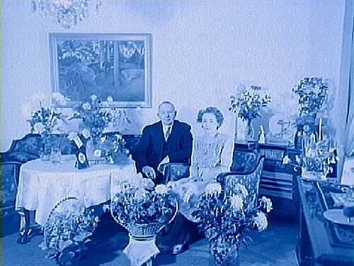 Titel: Fabrikör Bernhard Anderssons silverbröllop. Rumsinteriör, ett par.