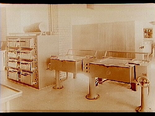Titel: Interiör av Lasarettets kök. Elektrisk utrustning levererat av: AB Elektro-Apparat, Kungsgatan 56, Göteborg. Örebro Läns Lasarett