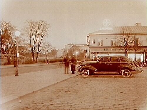 Två vånings hörnfastighet med följande affärer: EPA, Liberty, Walén 6 Co, Centrum Musik Kafé, Mills Herrekipering, Tobak, Handarbeten.