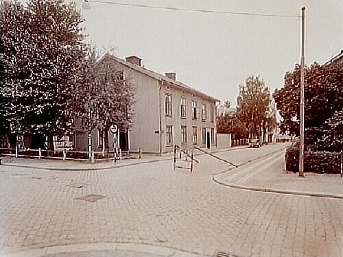 Tvåvånings bostadshus i trä, i korsningen Nygatan och Trädgårdsgatan, f.d. Lundholmska gården.
