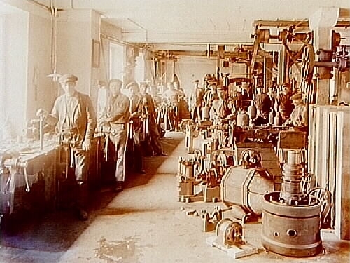 Verkstadsinteriör, 15 arbetare.
