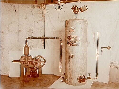 Verkstadsinteriör, pumpmaskin.