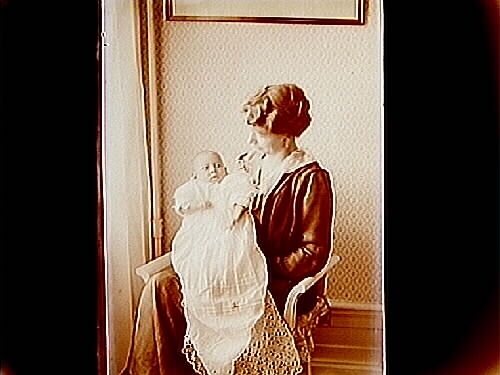 Mor med barn, nyfödd.