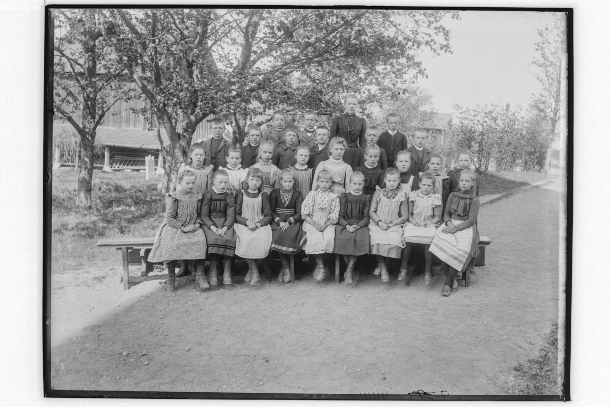 Askers skola, skolklass, 27 skolbarn med lärarinna Sofia Norén.