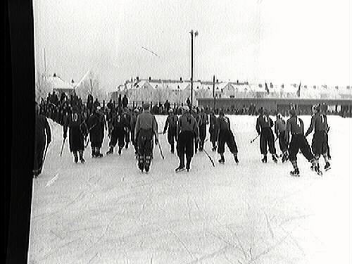 Bandy: ÖSK-Karlstads Göta. Spelarna lämnar planen till "gamla" omklädningen.