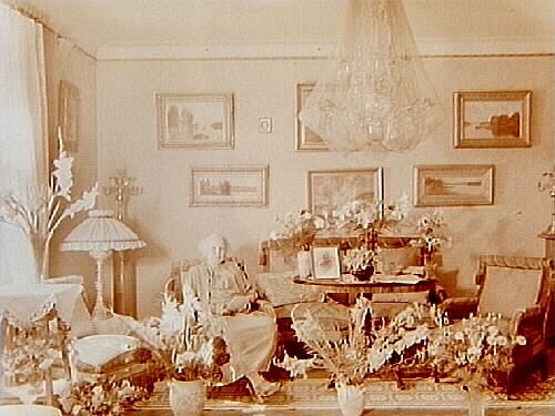 Titel: Rumsinteriör, en okänd kvinna. Födelsedag.