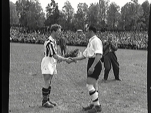 Fotboll. Lagkapten Sten Dahl(ÖSK) i slantsingling mot Sandviken IF.