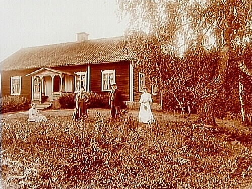Envånings bostadshus med inredd vind, förstebro med snickarglädje.