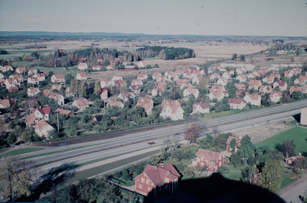 Utsikt från vattentornet Svampen. Området Hagaby och vägen till Hovsta.