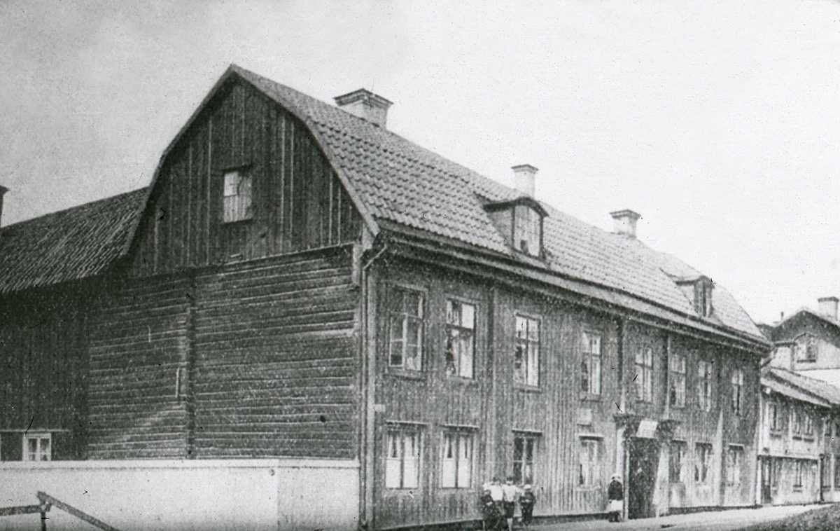 Kyrkogatan 2, 4. Lindska Boktryckeriet närmast och därefter Cajsa Wargs hus.
