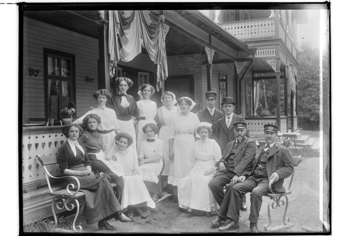 Strömsnäs sommarrestaurang, personalen, 14 personer på träverandan.