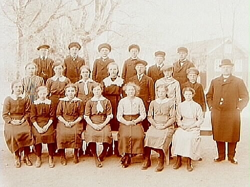 Konfirmander, 20 läsbarn och kyrkoherde Hagström.