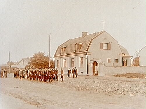 Titel: Kungliga Svea Trängkår. Soldathemmet, byggnad och soldater.