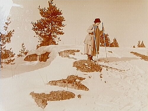 Skolfröken Persson på skidor.