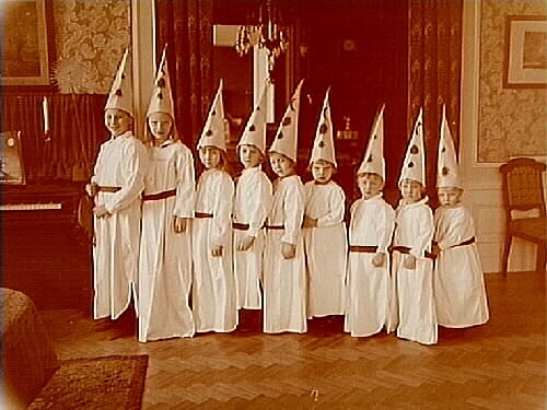 Nio barn utklädda till stjärngossar.