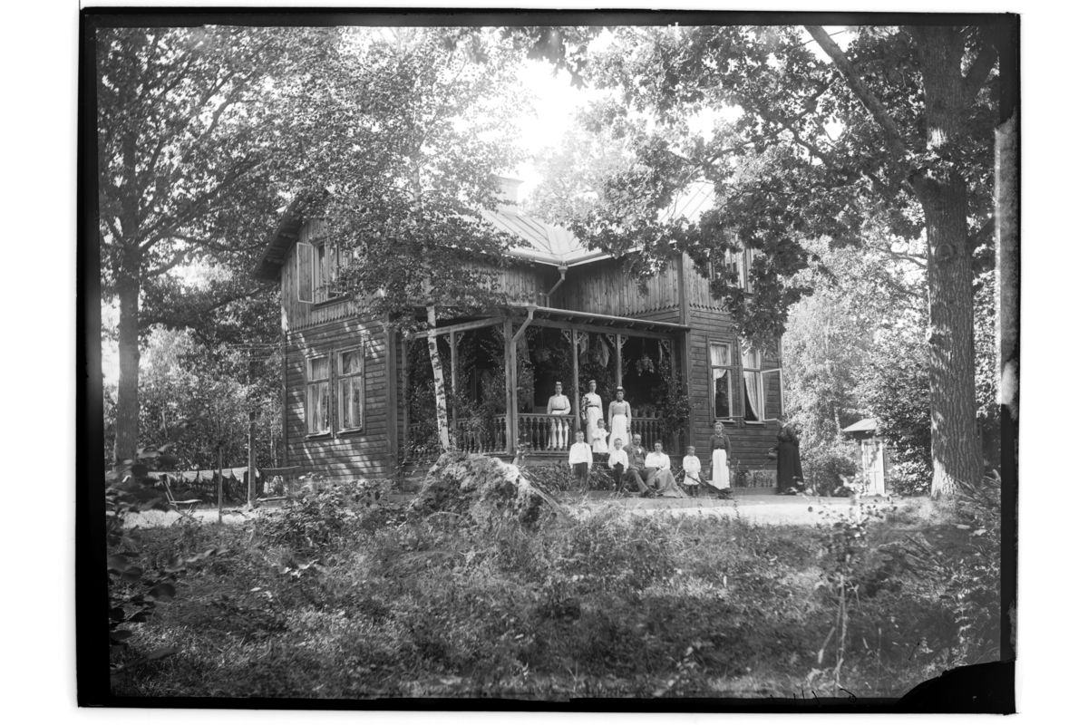Titel: Tomta, Örebro. Bostadshus, grupp 10 personer. Häradshövding G. Bergström, Drottninggatan 21, Örebro.