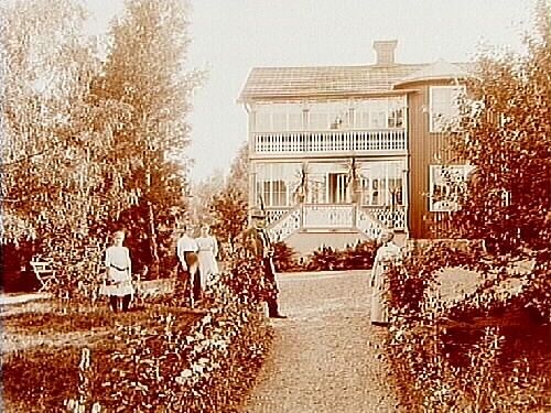 5 personer framför villan.