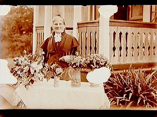 En kvinna på verandatrappan.