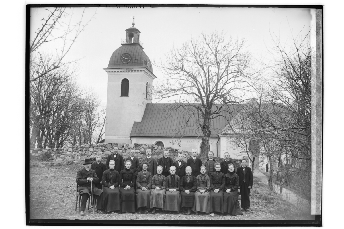 Konfirmander, 19 ungdomar och en präst.