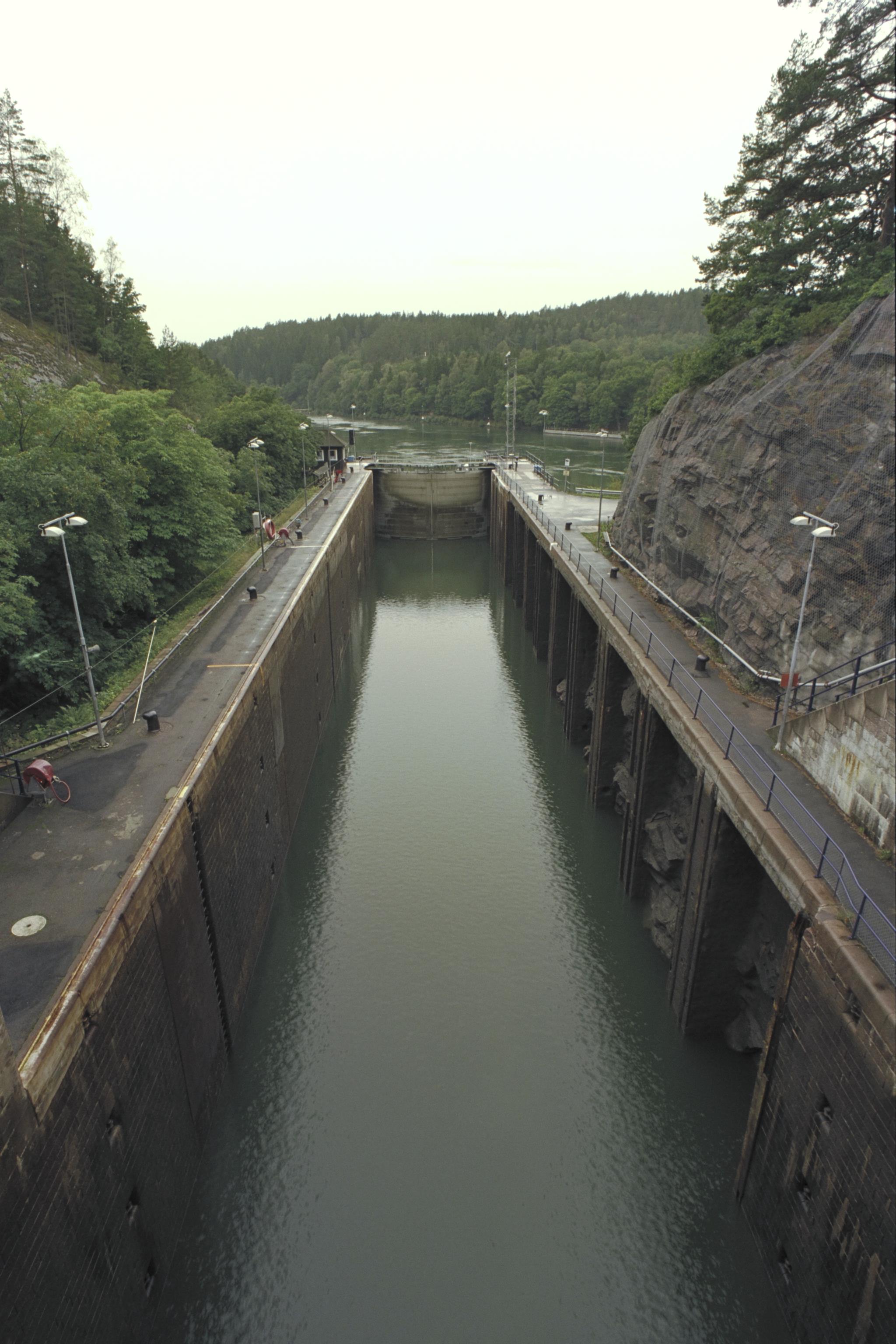 Nedre slussen i 1916-års slussled. Används än idag för trafik. (2010)