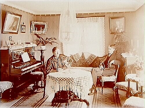 Rumsinteriör, en man och en kvinna i soffan.
