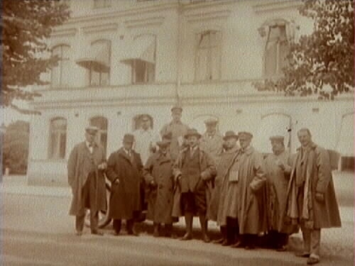 Herrar utanför Stadshotellet i Karlstad.