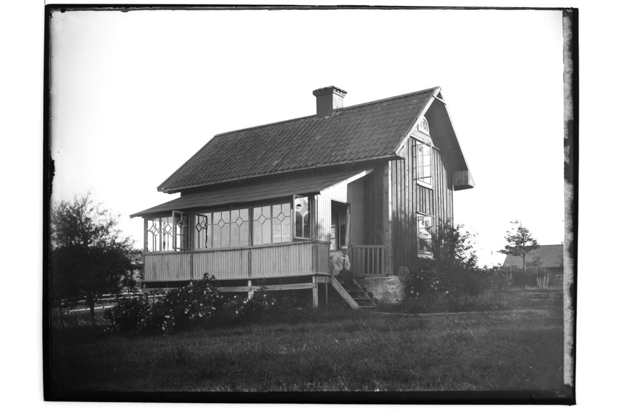 Enkelstuga ombyggd till sommarstuga med balkong, glasveranda.