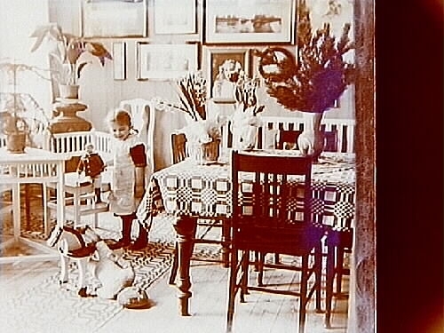 En liten flicka, rumsinteriör.