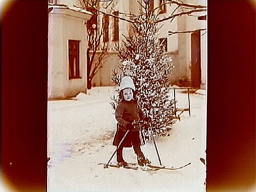 Titel: En liten flicka åker skidor, Margret Lindskog. Sam Lindskogs familjebild.