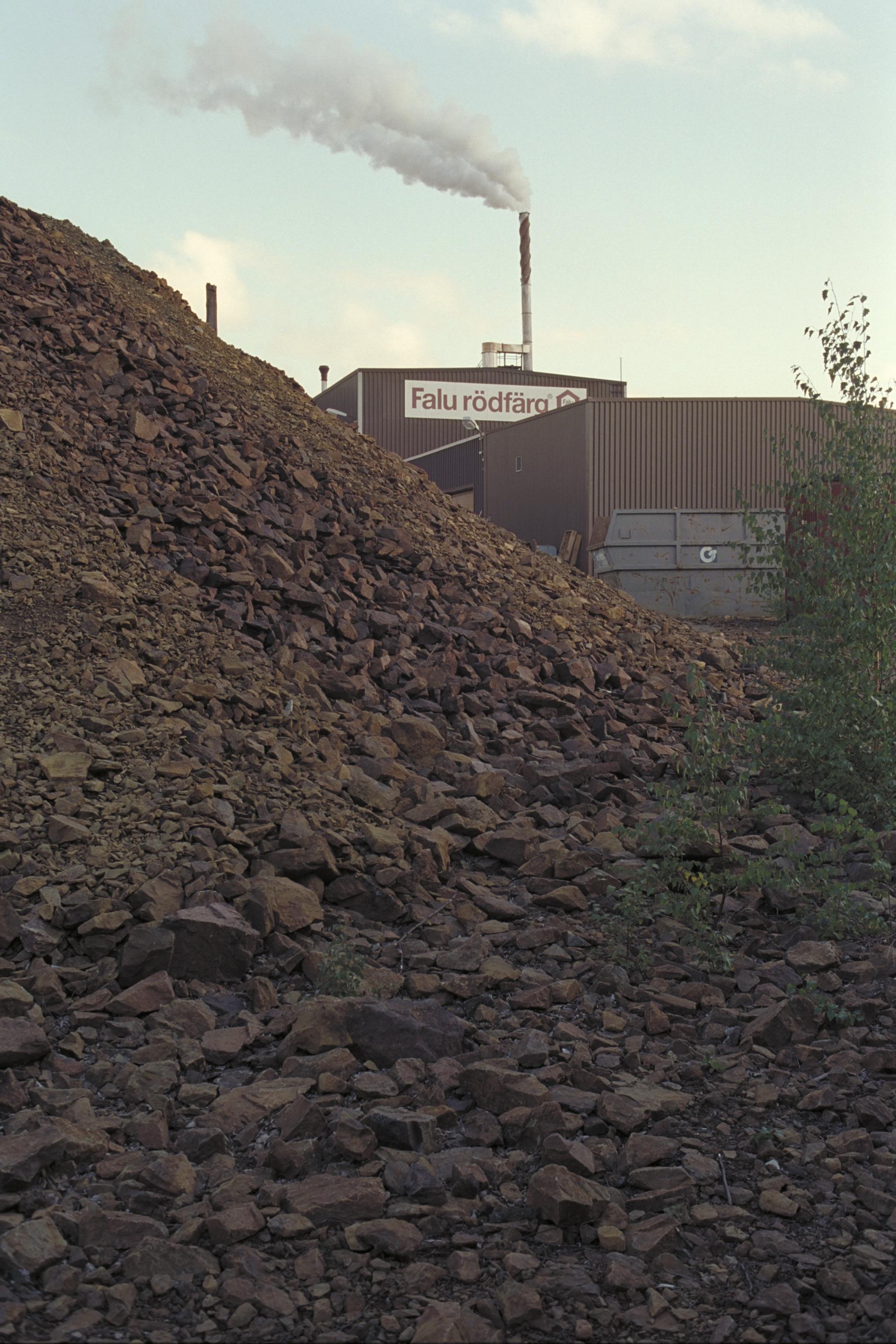 Slagghögar med Falu rödfärgsfabrik i bakgrunden.